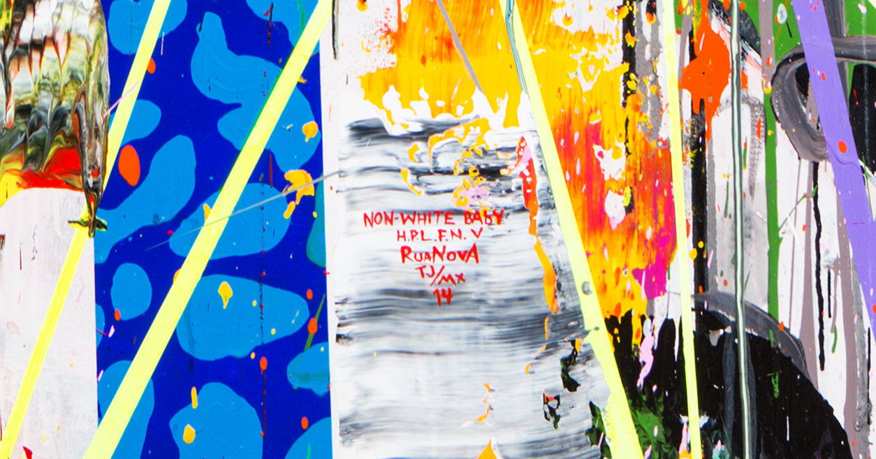 In this print, heraldry is reimagined to confront race, privilege, and power along the northern Mexican border, turning abstraction into a sharp reflection on visibility and belonging.